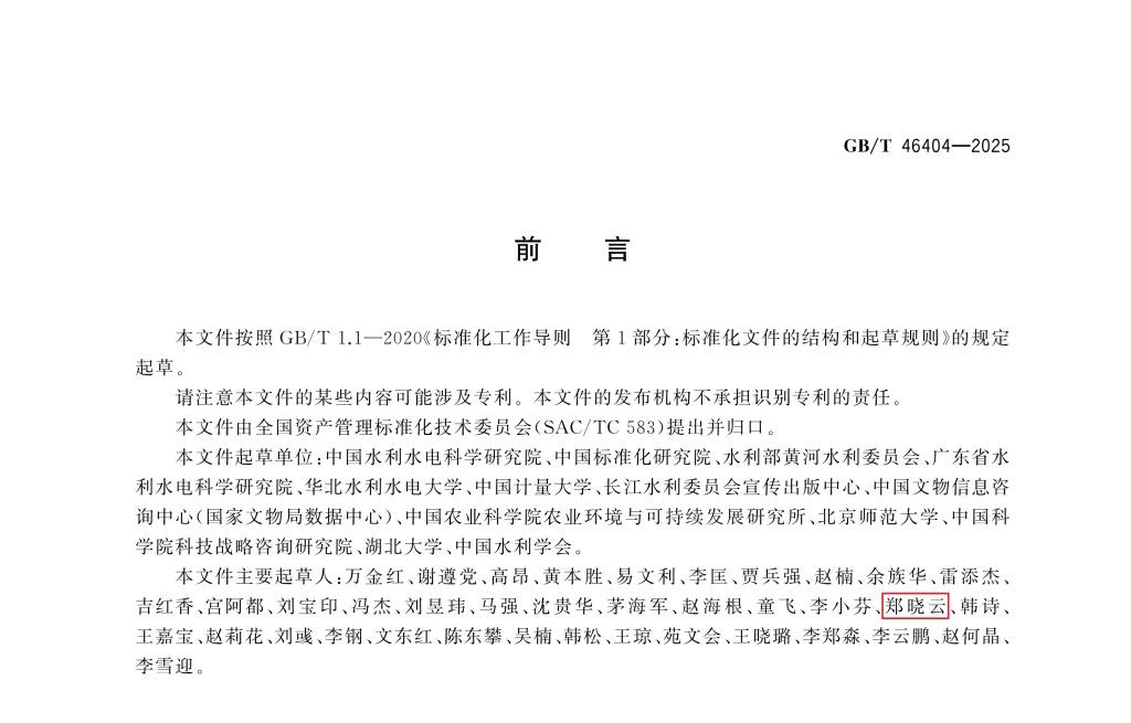 近日,由湖北大学历史文化学院郑晓云教授团队参与制定的中华人民共和国国家标准《水文化遗产资源分类与代码》(GB/T 46404-2025)正式由国家标准管理委员会和国家市场监管总局发布。分类保护是当前文化遗产保护的重要工作手段。科学制定水文化遗产分类与编码标准,有助于全面清晰地了解水文化遗产资源的整体状况,促进遗产资源信息采集、存储、交流与共享,实现水文化遗产资源规范有序管理;有助于优化资源配置,实施针对性的保护措施,提高水文化遗产保护的科学性和有效性;有助于梳理我国水文化的历史文化脉络,揭示水文化的传承与演变规律,推动水文化遗产学科研究工作;有助于根据遗产特点开展专题教育和科学普及工作,引导社会公众保护和传承各个历史时期、各个民族的优秀水文化遗产资源;有助于开发出更具针对性和特色的文化产品和文化服务,推动水文化产业的良性健康发展。这项国家标准由中国水利水电科学研究院牵头制定,湖北大学作为主要编写单位做出了重要的贡献,历史文化学院郑晓云教授团队具体承担了标准合作编写任务。此前,郑晓云教授团队于2023年参与了《水文化遗产价值评价标准指南》(GB/T 42934-2023)的国家标准制定工作,该标准已经在2023年8月颁布。这些工作表明湖北大学在参与国家标准制定工作中取得显著成效。