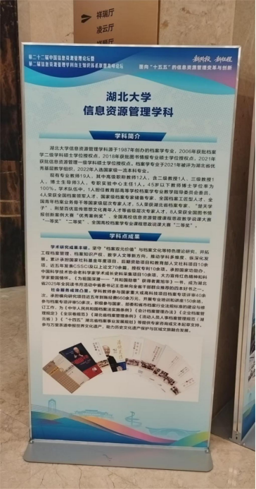 此外,作为信息资源管理学科自主知识体系联盟的成员单位,我院在会场专门设置了展板,宣传我院学科建设与发展情况。信息资源管理学科自主知识体系联盟成立于2023年,我院于2024年正式加入,是该联盟的第二批成员单位。在自主知识体系建设方面,我院积极行动,与其他成员单位紧密合作,携手为构建中国特色信息资源管理学科自主知识体系贡献更多智慧与力量。