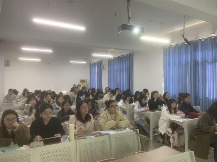 讲座尾声,学生代表朱梦鑫发言,她表示听完童老师的讲述,知道了自身在教学实践中存在的问题,也明白了今后的改进方向,此次讲座内容让她受益匪浅。随后,刘彦波教授进行了总结,他表示本次讲座是童老师自身研究与理论的深度结合,“教—学—评一体化”是新课标改革的趋势,我们要与时俱进,将原本教学设计的四个部分增加为五个部分——教学环节、教师活动、学生活动、评价任务和设计意图。