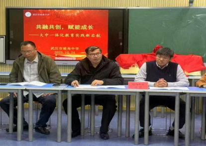 为深化高等教育与基础教育的有机衔接,推动师范生培养与实践教学深度融合,2025年10月24日下午,我院与师范学院携手武汉市堤角中学,共同举行堤角中学“湖北大学师范生(教育硕士)实践基地”揭牌仪式。本次活动以“共融共创,赋能成长——大中一体化教育实践新启航”为主题,旨在围绕协同育人、培养师范人才开展共建。