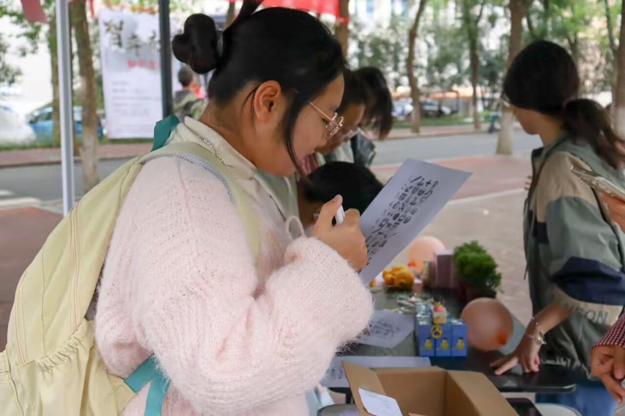 本次活动设置了四个互动模块,内容丰富、形式新颖,吸引了同学们的广泛参与。“‘镖’除烦恼”环节,参与者通过飞镖击破写有负面情绪的气球,实现压力的具象化释放;“烦恼投喂壶”以传统投壶形式,引导学生在投掷中拉近心理距离;“emoji猜词”游戏结合心理健康主题进行限时竞猜,增强了活动的趣味性与参与感;“情绪盒子”模块则采用“烦恼投递—善意回应—能量传递”的循环模式,让同学们在书写与分享中实现双向疗愈。