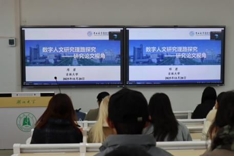 2025年11月20日上午,吉林大学邓君教授应邀为我院师生带来了一场题为《数字人文研究理路研究——研究论文视角》的讲座,本场讲座以线上线下相结合的方式举行。现场学术氛围浓厚,吸引了我院教师、研究生与各级本科生积极参与。讲座由我院张静文老师主持。