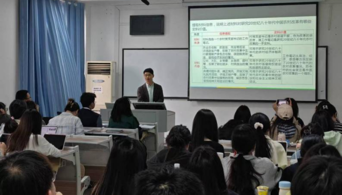2026年4月7日下午16:00,华中科技大学附属中学彭磊老师应邀做客我院,在湖北大学一号教学楼220教室做《从解题到解决问题:高考历史命题转型与教学策略》专题讲座。本次讲座由刘馗老师主持,学科教学(历史)专业研究生聆听了本次讲座。
