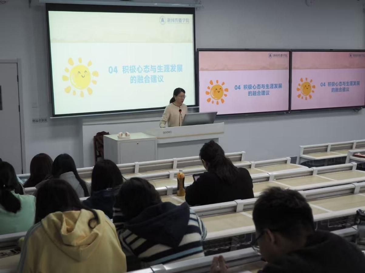 2025年11月7日晚,首场讲座于教3-401开讲,新闻传播学院党委副书记李瑶曦以“积极生态领航,生涯规划赋能”为主题演讲。