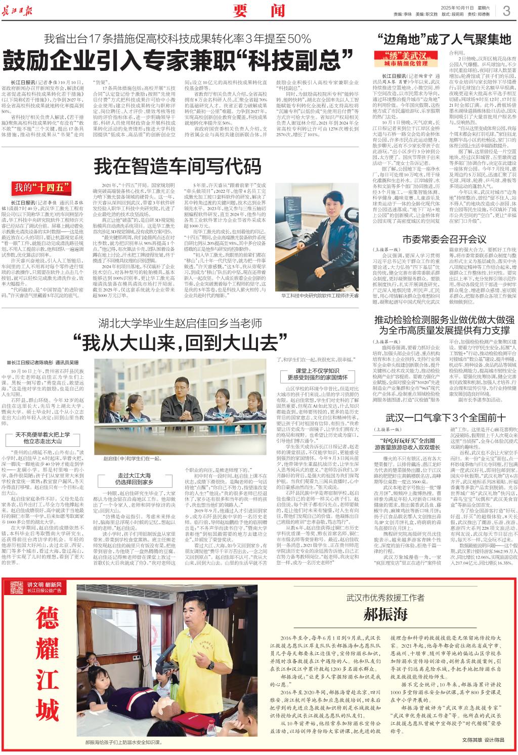 学生张天成告诉长江日报记者,赵老师的课堂很活,不仅能学知识,更能感受到强烈的家国情怀。今年9月3日阅兵前夕,他带领学生重温抗战历史,让学生深入思考阅兵式的意义。“老师告诉我们,岁月静好的背后,是强大的祖国为我们保驾护航。当我们观看九三阅兵直播时,心中的自豪感油然而生。”张天成说。